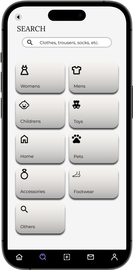 - The search bar includes options for browsing by clothing type, brand, size, and price range, providing users with flexible and efficient ways to discover items that match their preferences and style.