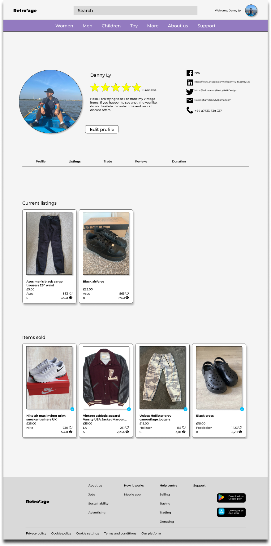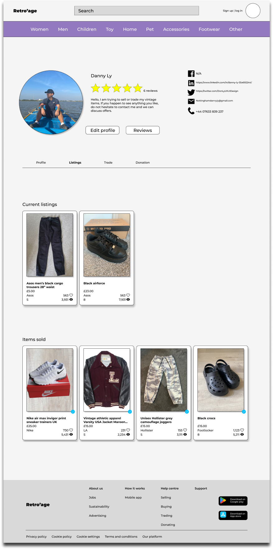 The project involved the development of both a mobile app and a responsive website. While some companies offer both functionalities, they often differ in their facilities. In the case of Retro'age, the mobile app is dedicated to users uploading their vintage items for online visibility, although users are able to sell, buy and trade. On the other hand, Retro’age responsive website focuses more on users from around the world to engage in buying, selling, and trading activities. These two variations of the mobile app and responsive website share a common structure but serve distinct functions.