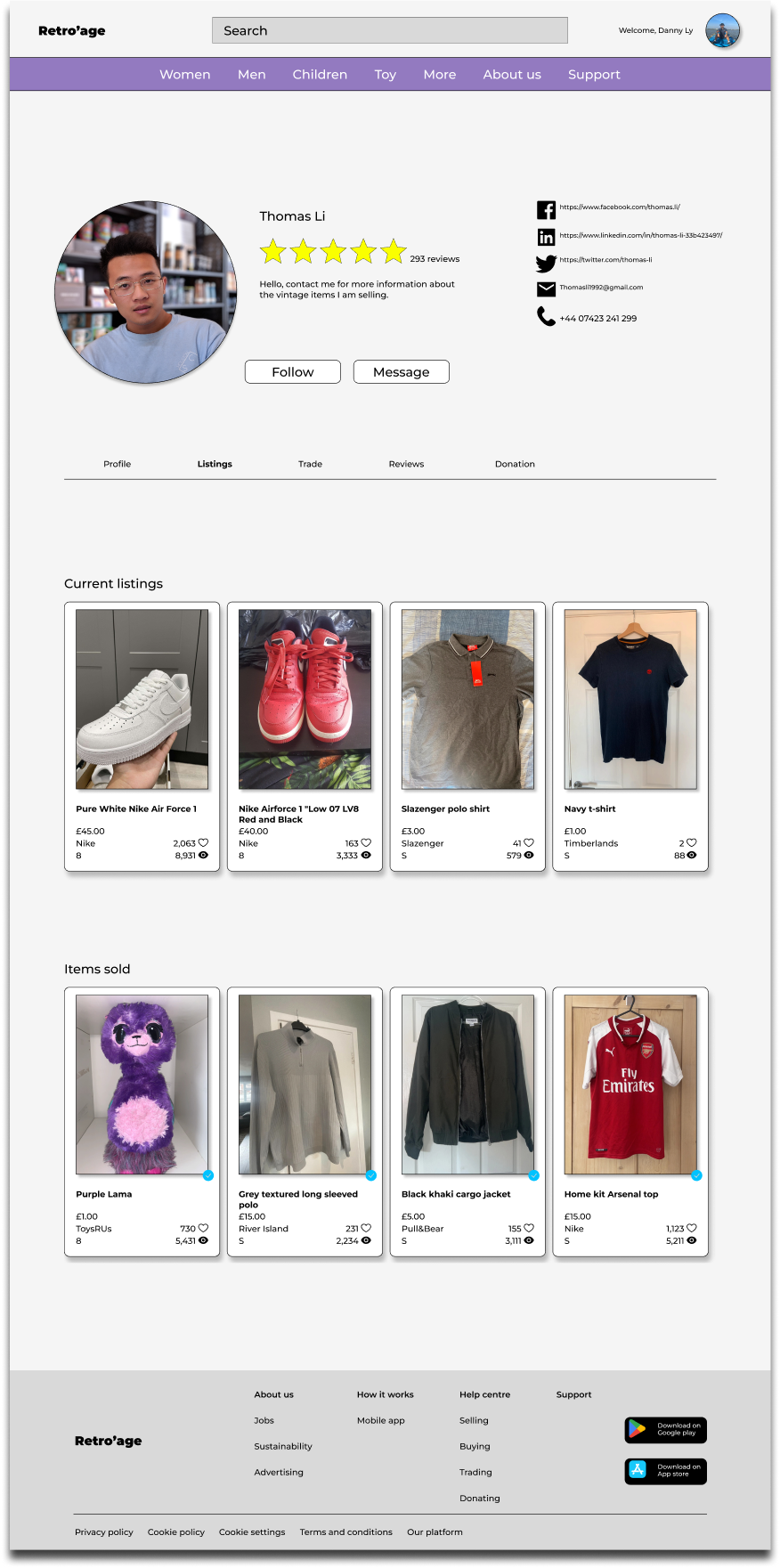 The Retro'Age application presents a streamlined and dependable solution, facilitating users in the seamless creation of listings for their vintage clothing items. Users can effortlessly upload high-quality images, set prices, and indicate their preference for selling, trading, or donating. The platform incorporates secure payment gateways and escrow services, ensuring that sellers receive payments only upon confirmation of the buyers receiving items in the promised condition. Furthermore, users have the option to propose trade offers and engage in negotiations for specific items. Notably, the application features a donation functionality, enabling users to showcase items earmarked for charitable contributions to organisations