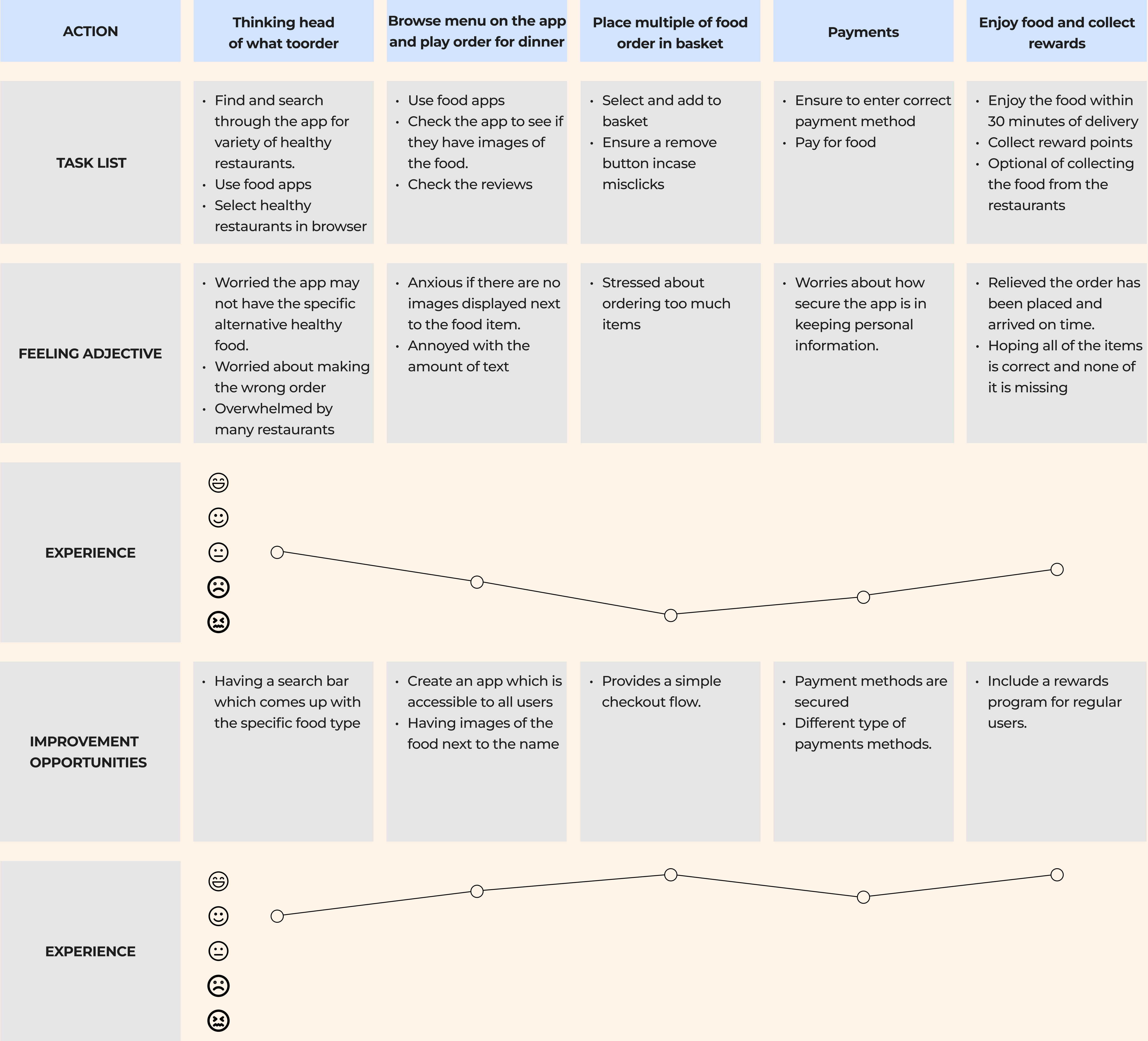 I conducted interviews and created an empathy map to help me understand the users further, I’m designing the app to help benefit the users needs. The main goal of the research was to understand and challenges faced towards working adults who work late hours on their shifts and not having the time to go home and cook healthy food for themselves without lack of sleep and time.