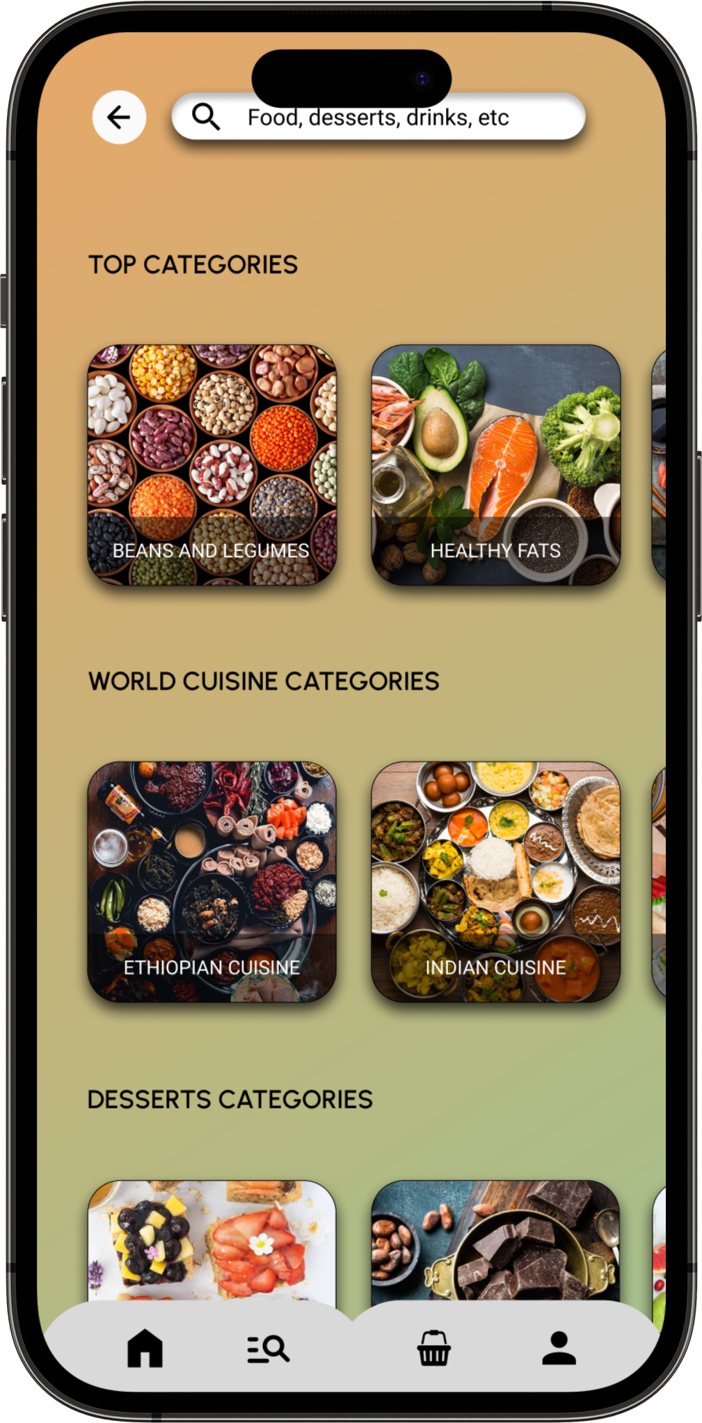 - Restaurant categories are immediately displayed when opening the app.