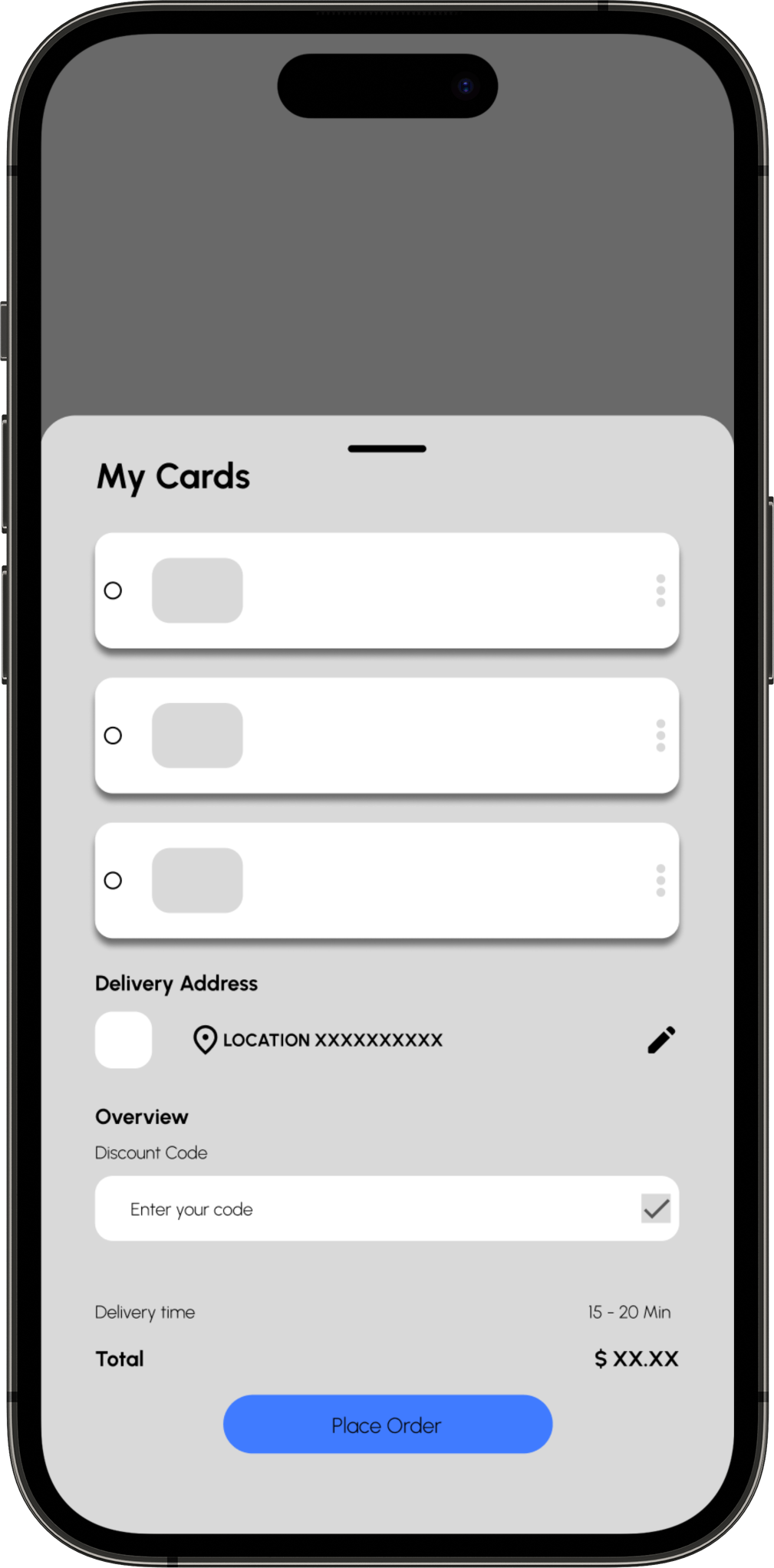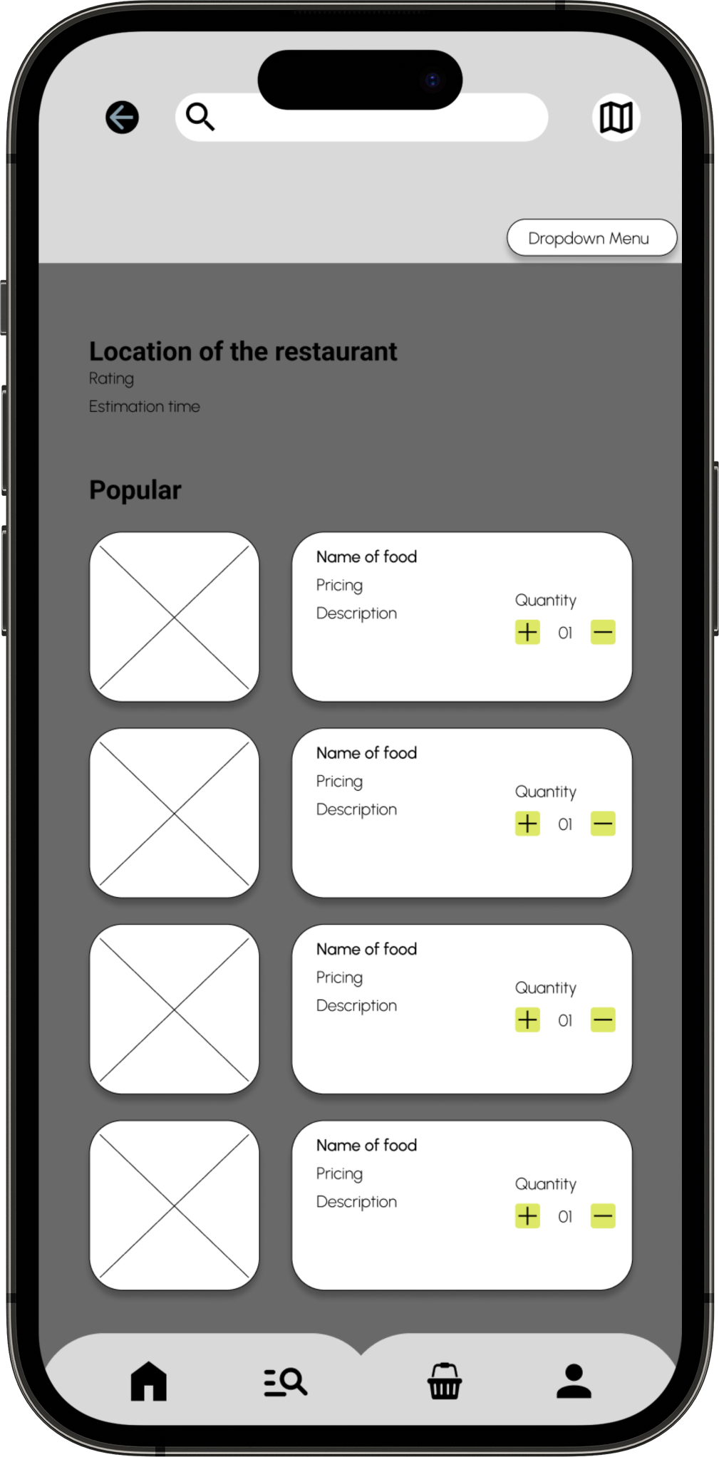 I started with pen and paper wireframe, and created multiple version of each screen, until I was able to find the right format of layout for the delivery app. I found the combinations of features elements which is well suited for the users needs, for a LO-FI wireframe for the app design.